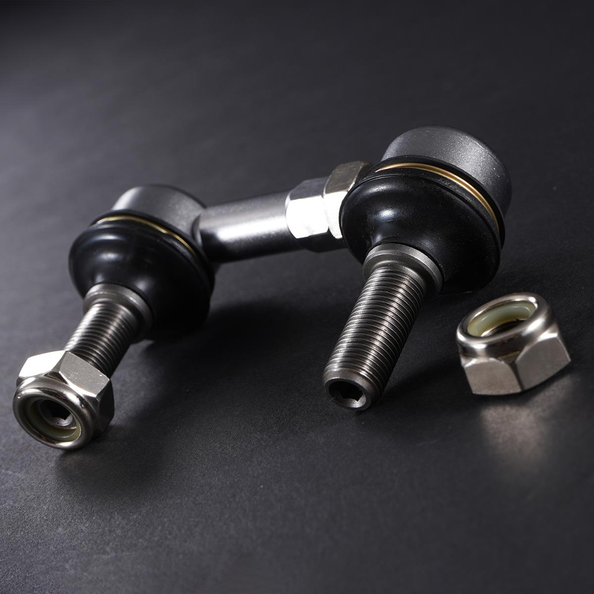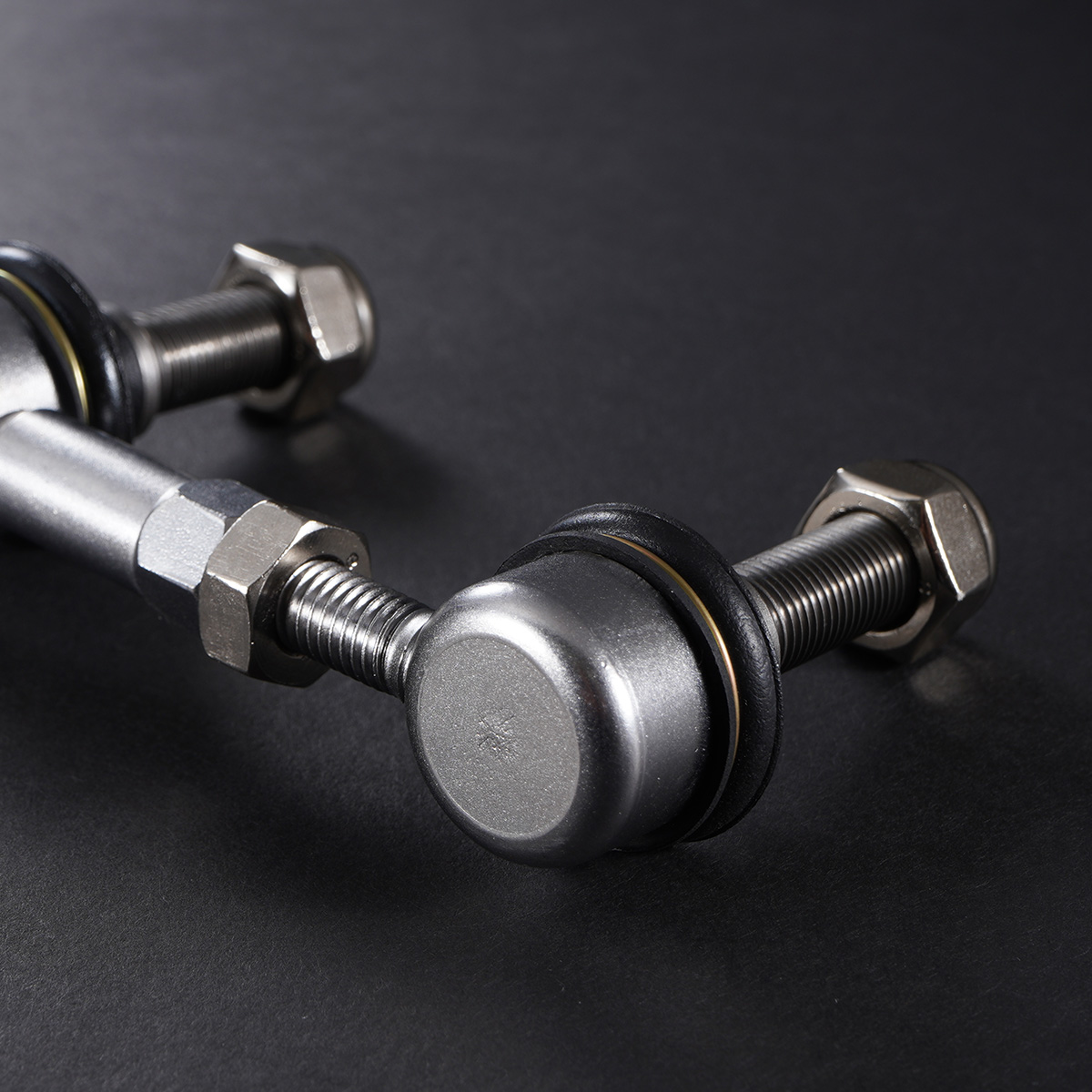 車両の走行安定性と操縦性を向上させるための重要なコンポーネントです。特にコーナリング時の車体のロールを効果的に抑え、路面からのフィードバックを的確に伝えることで、ステアリング操作の精度が向上します。高速道路やワインディングロード、スポーツ走行時にも安定したハンドリングを実現し、ドライバーに安心感を与えます。また、車高を下げた車両ではサスペンションのジオメトリが変化し、純正のスタビリンクでは負荷が増えて適切な機能が発揮できなくなることがあります。調整式のフロントスタビリンクを使用することで、車高に応じた理想的なスタビライザーの角度が確保され、サスペンションの動きを最大限に引き出せます。さらに、耐久性の高い素材を採用しているため、長期にわたって安定した性能を維持し、日常走行からスポーツ走行まで快適なドライビング体験を提供します。