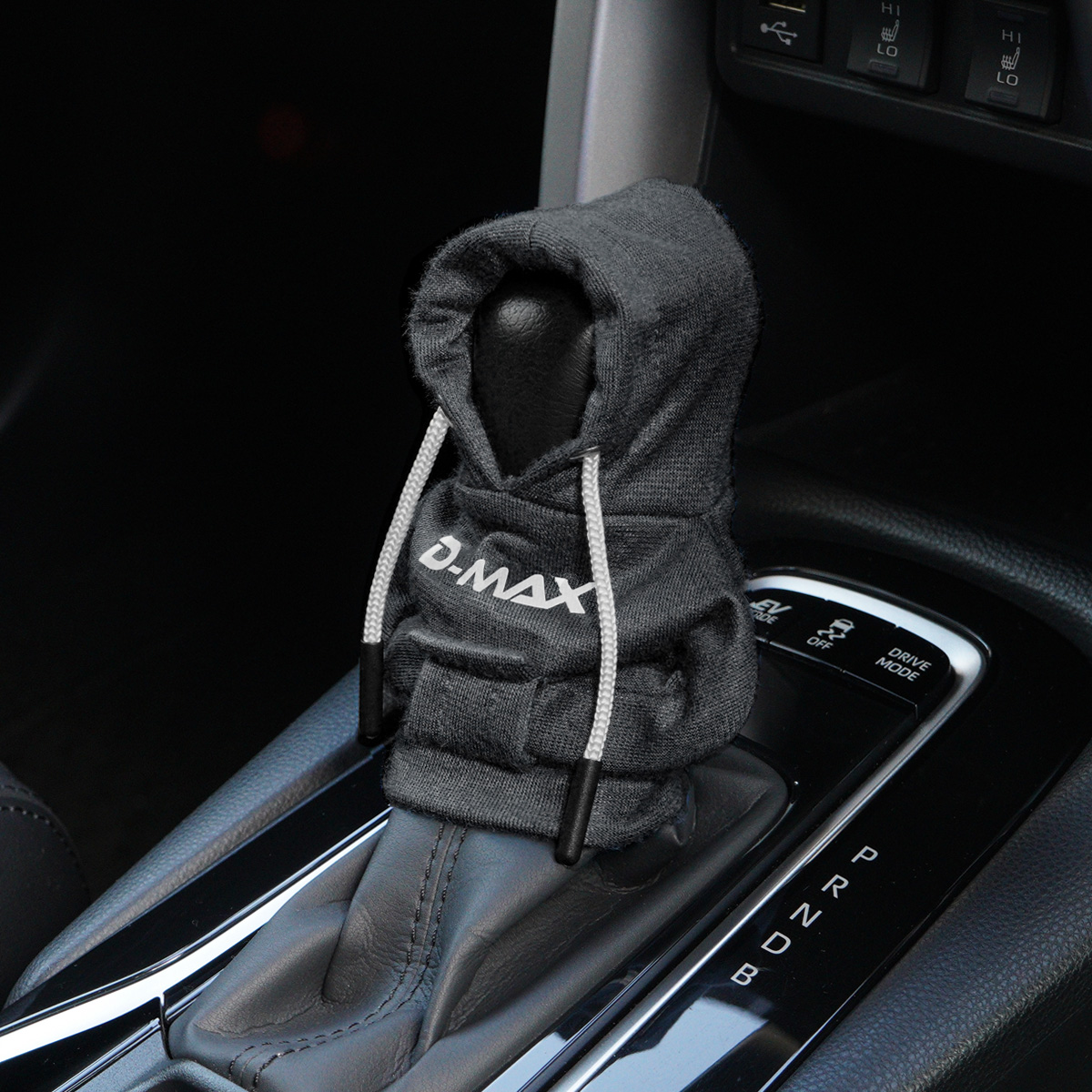 シフトノブにかぶせてフィットさせるだけなので、取付け簡単。D-MAXのワンポイントが、さりげなく存在感を演出します。